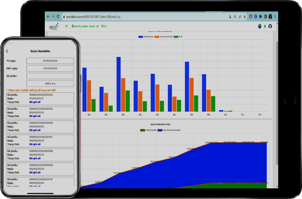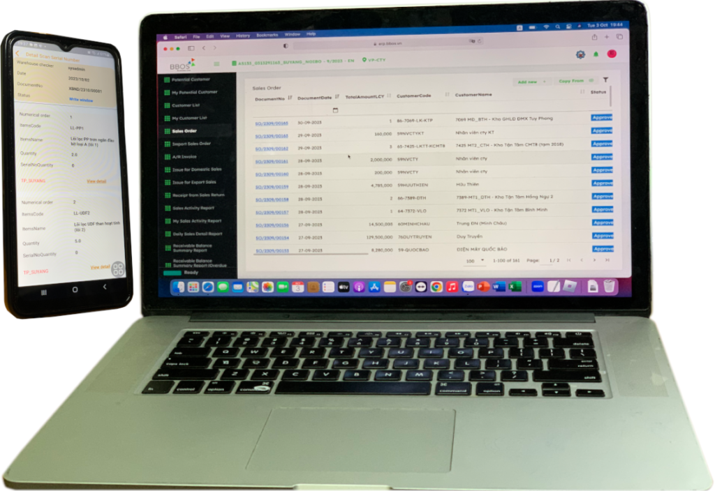 - Quản lý xuất kho bán hàng theo số serial number và scan serial number bằng app mobile