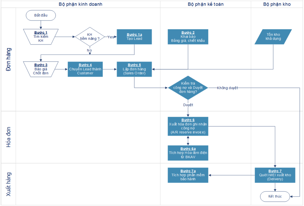 - Định nghĩa nhân viên sales, sales admin, quản lý khu vực và phần quyền dữ liệu bán hàng và khách hàng theo phạm vi công việc