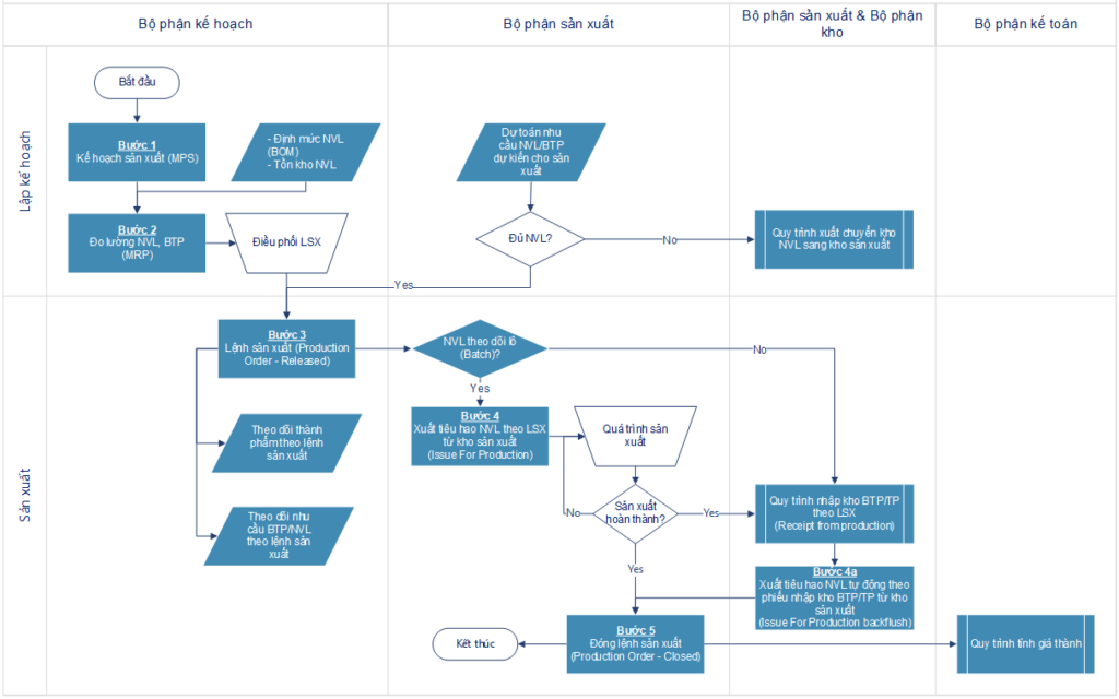 - Theo dõi thành phẩm và bán thành phẩm theo lệnh sản xuất